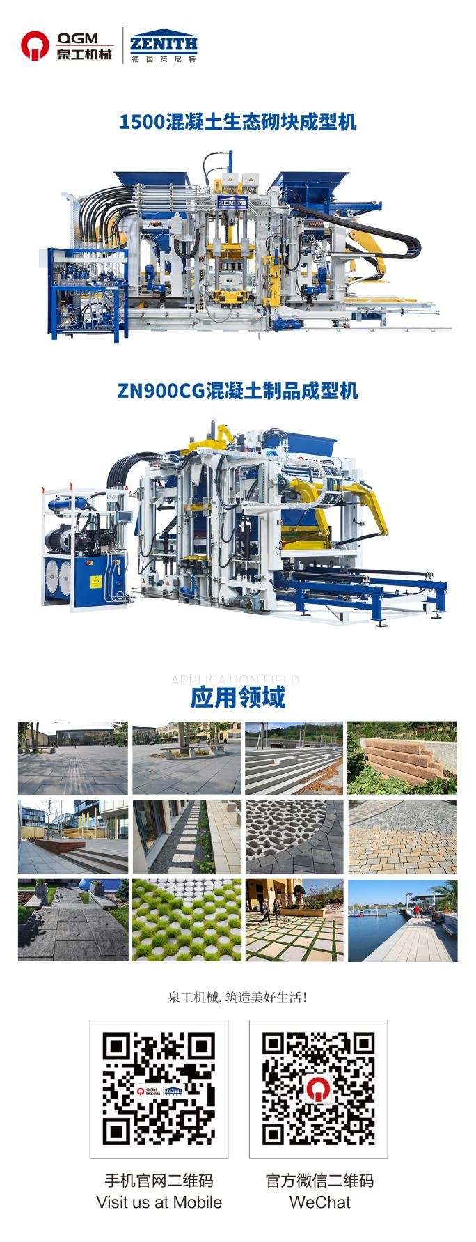 QGM on sitoutunut olemaan globaali integroitu tiilivalmistusliuosten operaattori, ja se voi tarjota asiakkaille räätälöityjä tiilivalmistusratkaisuja kuiva värähtelyn muovaus- tai märän tiilen valmistusprosessien avulla. QGM-staattiset paineen muovauslaitteet omaksuvat suuren käännöksen staattisen paineen muovauksen, ja tuotteella on korkea tiheys. Servoohjaus, korkeapaineinen muovaus, alhainen melu, energiansäästö ja ympäristönsuojelu. Täysin automaattinen ohjaus voi säätää kaavaparametreja reaaliajassa materiaalin ominaisuuksien mukaan voimakkaasti sopeutumiskyvyn, erittäin hienojen jauhemateriaalien kohdennetulla prosessoinnilla ja voi kuluttaa suuria määriä jauhemaisia materiaaleja, kuten mutakakkuja ja kuonaa, saavuttaen kiinteän jätteen resurssien kattavan toissijaisen käytön vaikutuksen.
